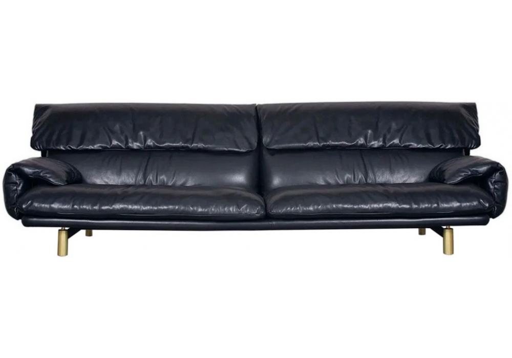Jo designed by Draga&Aurel for Baxter is a sofa with matte black-varnished metal structure and differentiated density polyurethane foam filling. Seat and armrests cushions in washed and sterilized goose down with pad in differentiated density polyurethane foam insert. Feet in satin brass. Upholstery in soft leather only.