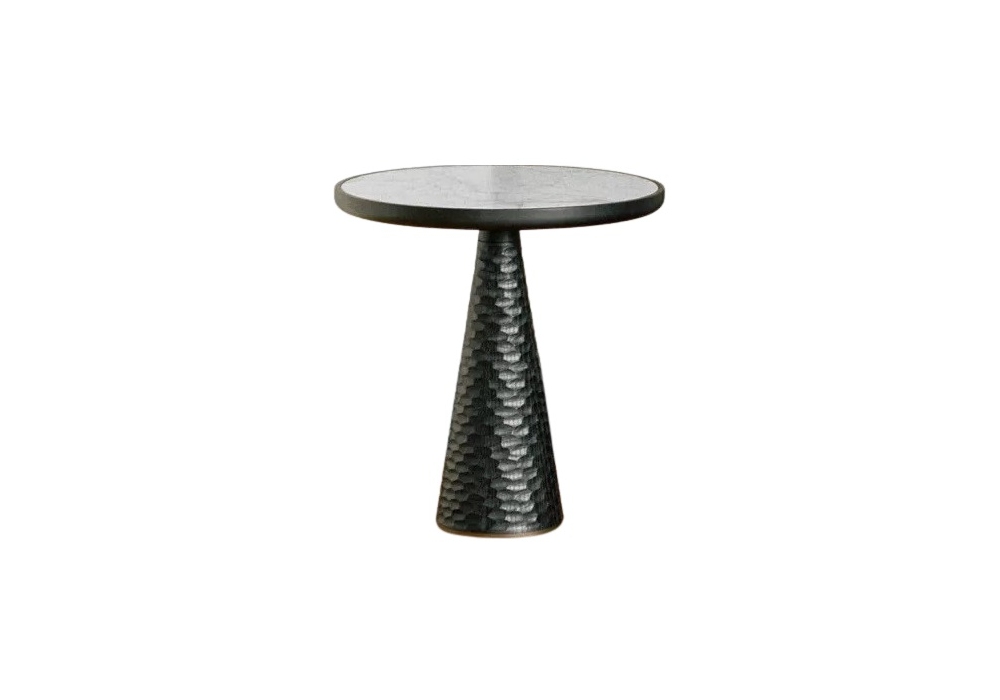 Duo Pedestal Table designed by Roberto Lazzeroni is composed of marble top and conical structure in stained solid ash.