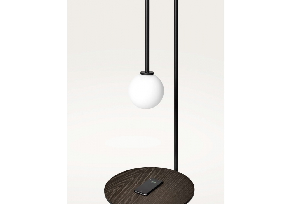 Light With a Table designed by Keiji Takeuchi for Living Divani is a floor lamp with an integrated side table. It is made with a metal base and structure on which is inserted a round table through a 180 ° jointed insert.