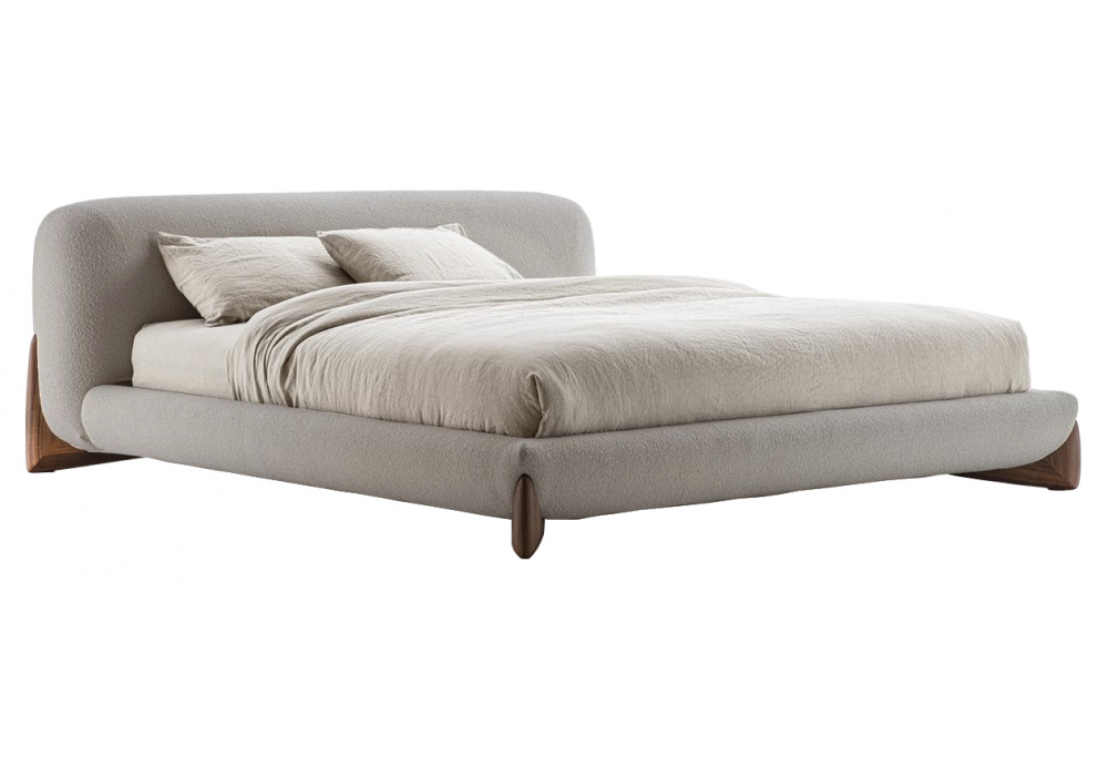 Softbay designed by Giuseppe Viganò for Porada is a bed with four feet in solid canaletta walnut and headboard and bed frame with fabric covering. Slatted bed base included.