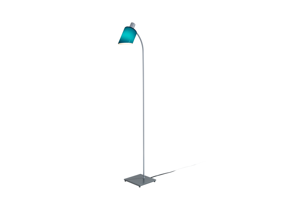 Lampe de Bureau designed by Charlotte Perriand for Nemo is a floor lamp with structure in steel entirely painted in gray colour. The diffuser is in molded glass and shields a LED or halogen light source with E14 fitting powered by a transparent plastic cable. Lampe de Bureau is available in different finishes.