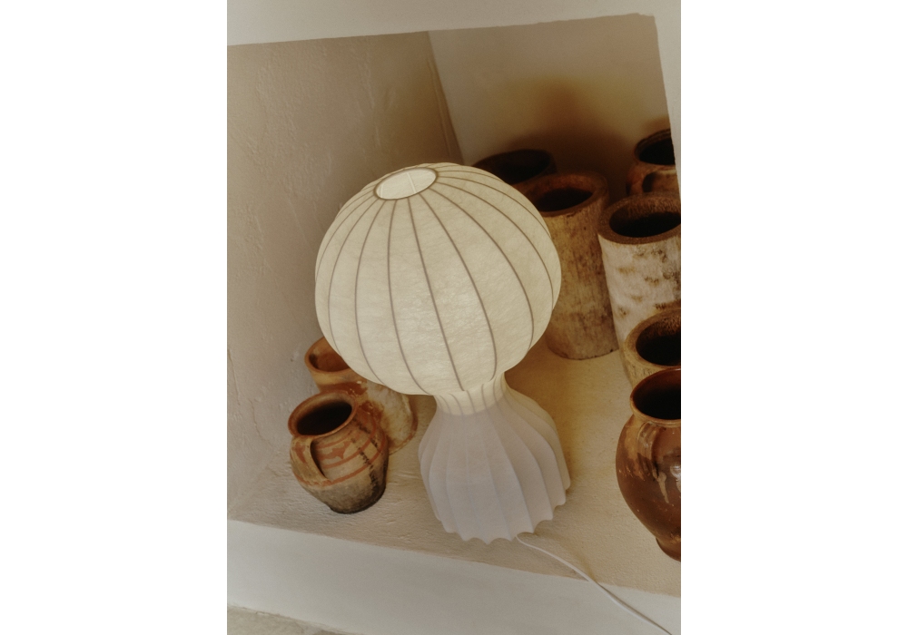 Gatto designed by Achille & Pier Giacomo Castiglioni for Flos is a table lamp with diffused light. Internal structure in white powder-coated steel. Diffuser in "cocoon" resin sprayed on the structure, with transparent protection, sprayed at the end of the process. On the cable there is an electronic dimmer that allows the dialing of the light intensity. Bulb not included.