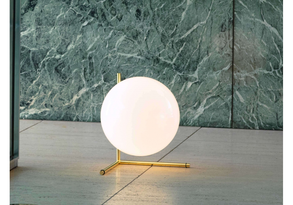 IC T3 designed by Michael Anastassiades for Flos is a table lamp made of steel, brass, blown glass.