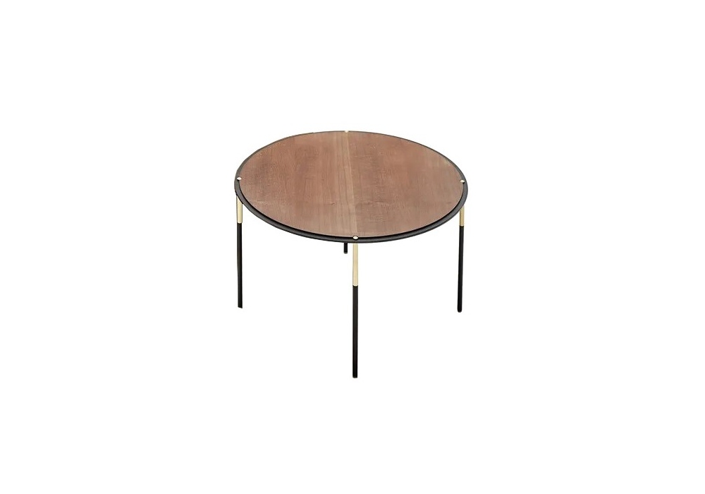 Era Table designed by David Lopez Quincoces for Living Divani is a coffee table with wooden top and gunmetal gray metal structure and brass details, matt painted satin finish.