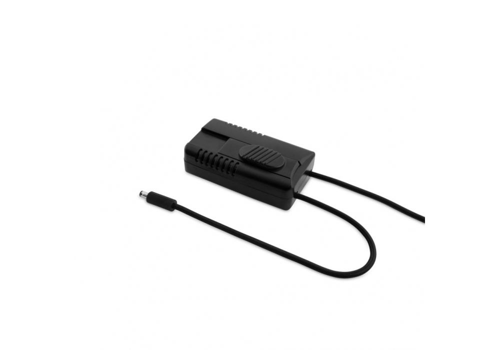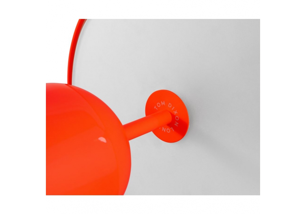 Bell Fluoro designed by Tom Dixon is a table lamp made of shiny powder-coated steel and braided black cable.