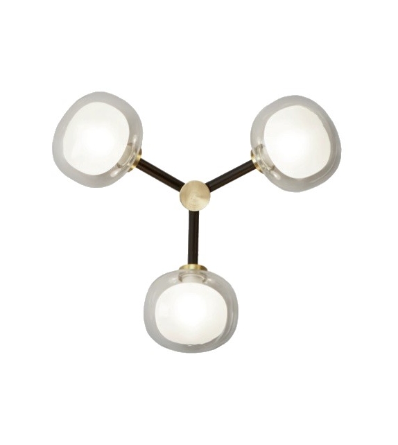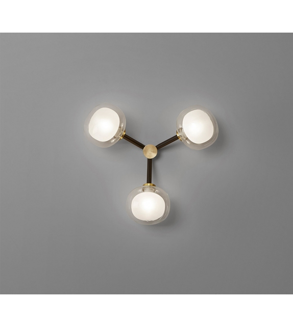 552.73 Nabila designed by Corrado Dotti for Tooy is a wall / ceiling lamp with matt black metal structure and brushed brass lampshade with clear glass. Bulb not included.