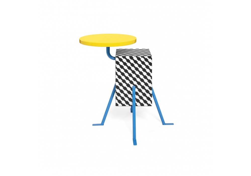 Kristall designed by Michele De Lucchi for Memphis Milano is a side table in lacquered wood and covered in decorative laminate, elements in painted metal.