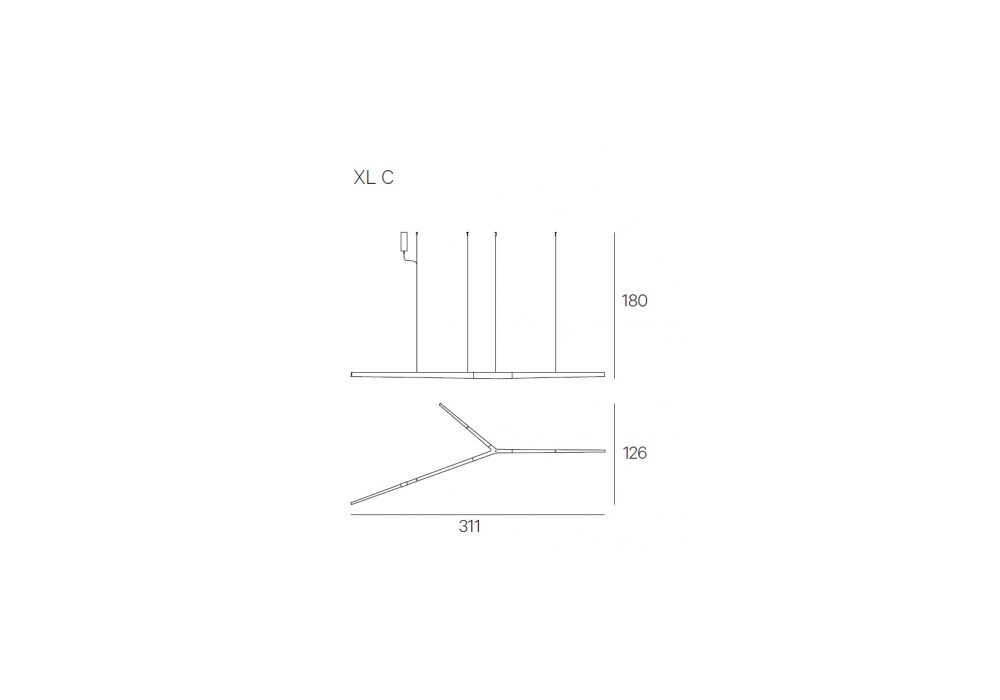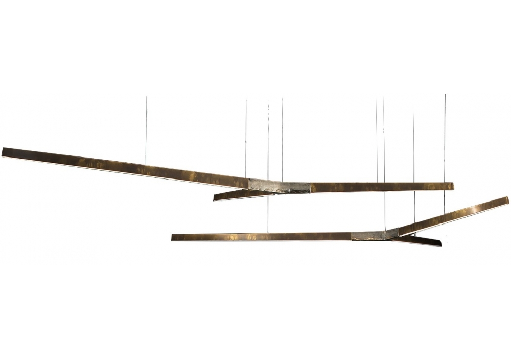 Starlight Horizontal designed by Massimo Castagna for Henge is a suspension lamp structured by three painted metal arms arranged in a Y shape.