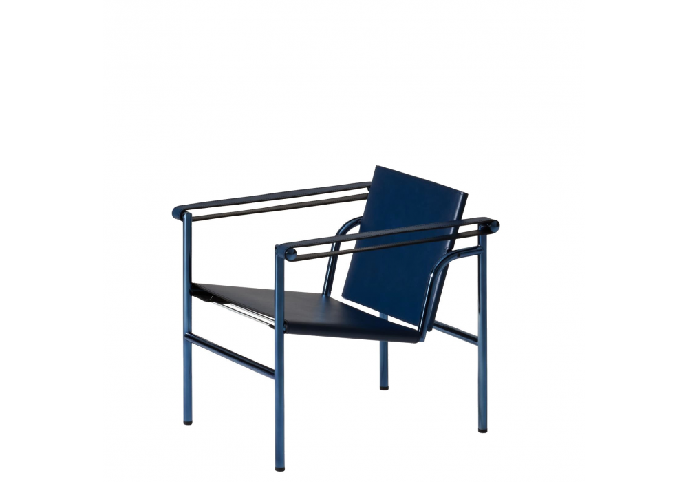 1 Fauteuil Dossier Basculant, 60 designed by Le Corbusier, Pierre Jeanneret, Charlotte Perriand for Cassina is a small armchair made with seat, backrest and armrests in self-supporting Plus ton-sur-ton leather and polished metal structure.