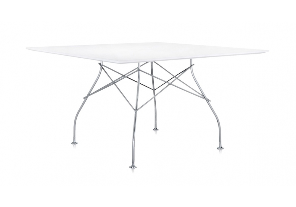 Glossy designed by Antonio Citterio & Oliver Löw for Kartell is a table with scratch-resistant white laminate top and chromed steel structure.