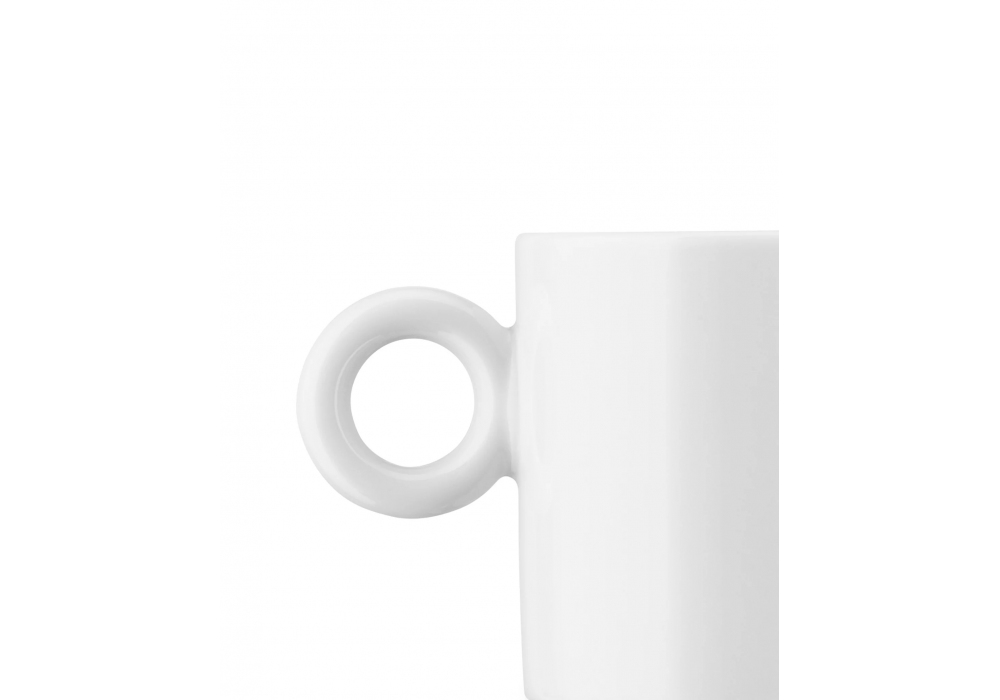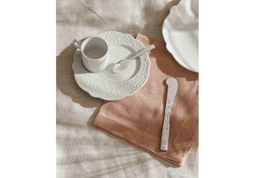 Dressed, designed by Marcel Wanders for Alessi, is a coffee cup and saucer made of white porcelain.