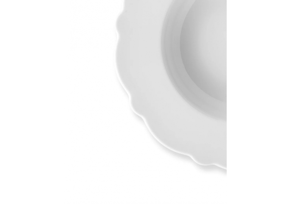 Dressed, designed by Marcel Wanders for Alessi, is a soup plate made of white porcelain.