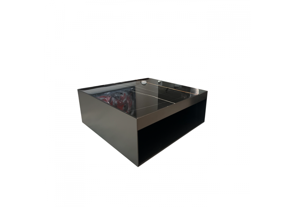 Elliott designed by Rodolfo Dordoni for Minotti is a coffee table made with a Sahara noir marble top and a bronze structure.