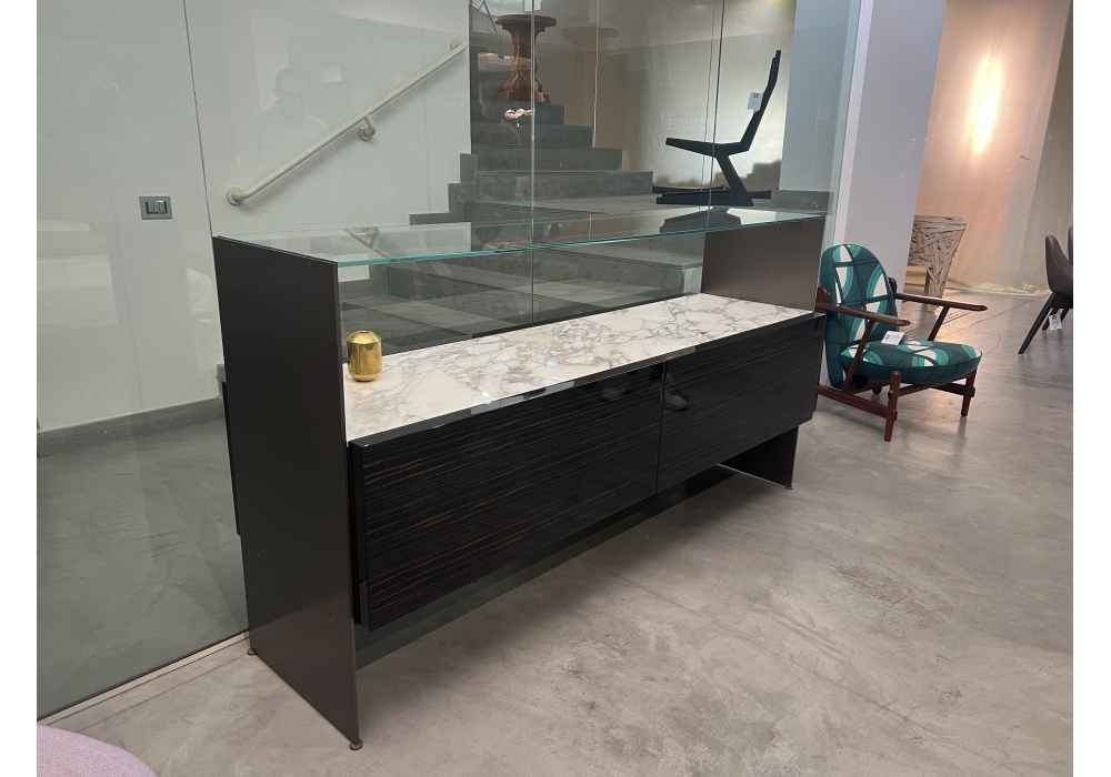Carson designed by Rodolfo Dordoni for Minotti is a sideboard made with a Calacatta marble top and an Ebony structure.