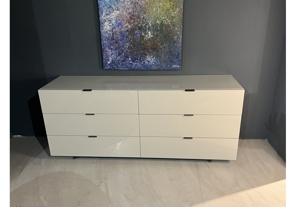 Harvey Line designed by Rodolfo Dordoni for Minotti is a dresser with a glossy sand lacquered finish.