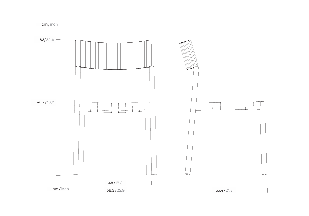Passage designed by Ronan Bouroullec for Kettal is a chair with a metal frame in a glossy or textured finish. The seat is made of papyrus or veneered oak wood.