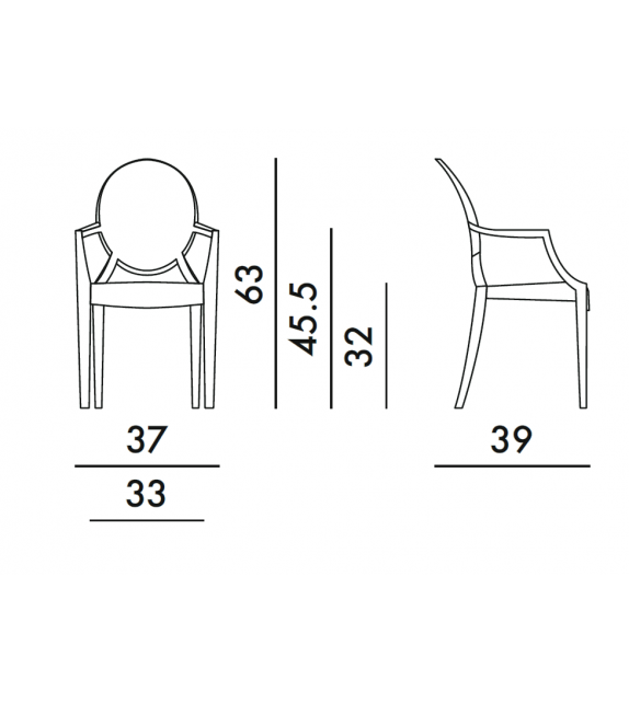 Lou Lou Ghost designed by Philippe Starck for Kartell is a chair made of batch-dyed transparent polycarbonate. Available in different finishes.