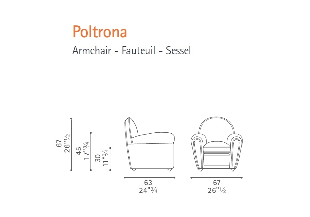 Poltrona Frau Baby Vanity Fair: The full, rounded comfort and cartoon design of Baby Vanity make it a must-have amongst its young admirers. It envelops them into its soft, natural materials, with Pelle Frau® leather upholstery and feather-padded cushion resting on a solid seasoned beech wood structure. Adults and children alike, will be won over by the same, precise details: the row of leather-upholstered nails that runs along the backrest and arms, just like it does on daddy’s. All the safety and peace of mind to help your little one grow up in a quality environment. The carefully re-dimensioned backrest and seat make Baby Vanity the perfect size and shape for the very young. Birch and poplar plywood structure. Armrests and backrest are padded with moulded polyurethane foam, whilst the seat is made from polyurethane foam. Down filled seat cushion. The rear of the backrest, and external sides are finished with leather covered tacks. Feet are in a dark walnut stain (05).