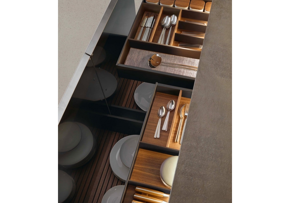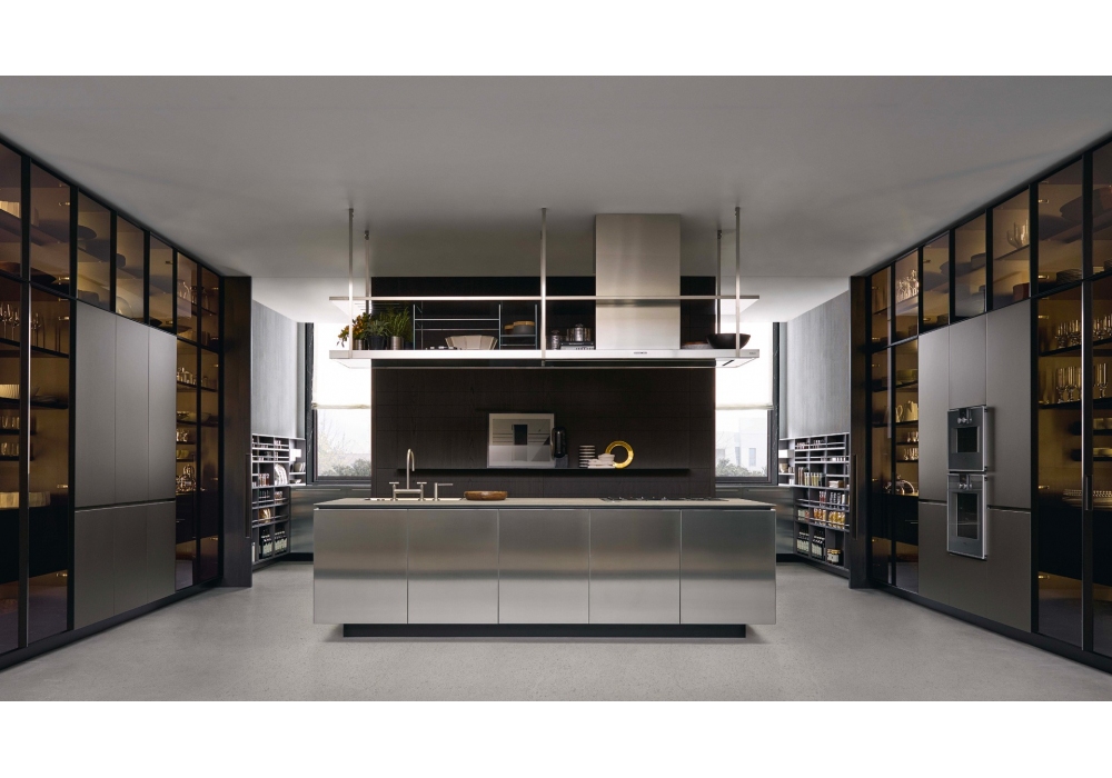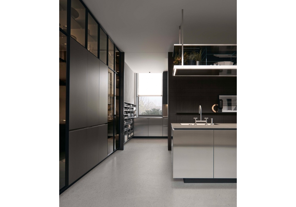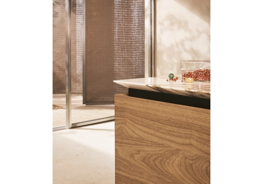 Artex by Poliform is a kitchen with protagonists the materials, thanks to large surfaces and volumes reduced to the essentials. The doors can be in matt laminate, embossed lacquer, lacquered oak, metal lacquered, glossy lacquer, essence, solid wood, corian, steel or reflective glass. Tops in wood, laminate, corian, steel, marble, quartz, stone or dekton. Snack shelves in embossed lacquered, Corian, stone, marble, wood or laminate.