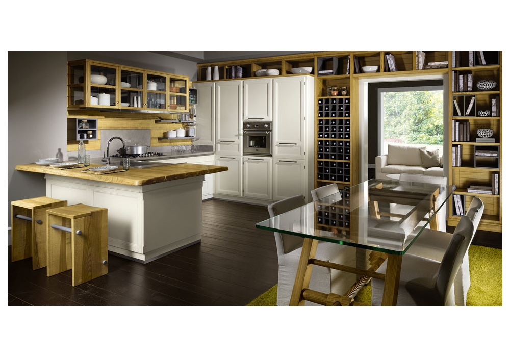 Living Design by L'Ottocento is a kitchen that enriches with refined details and fine finishes the classic taste of individual furnishings . Available in different finishes and compositions.