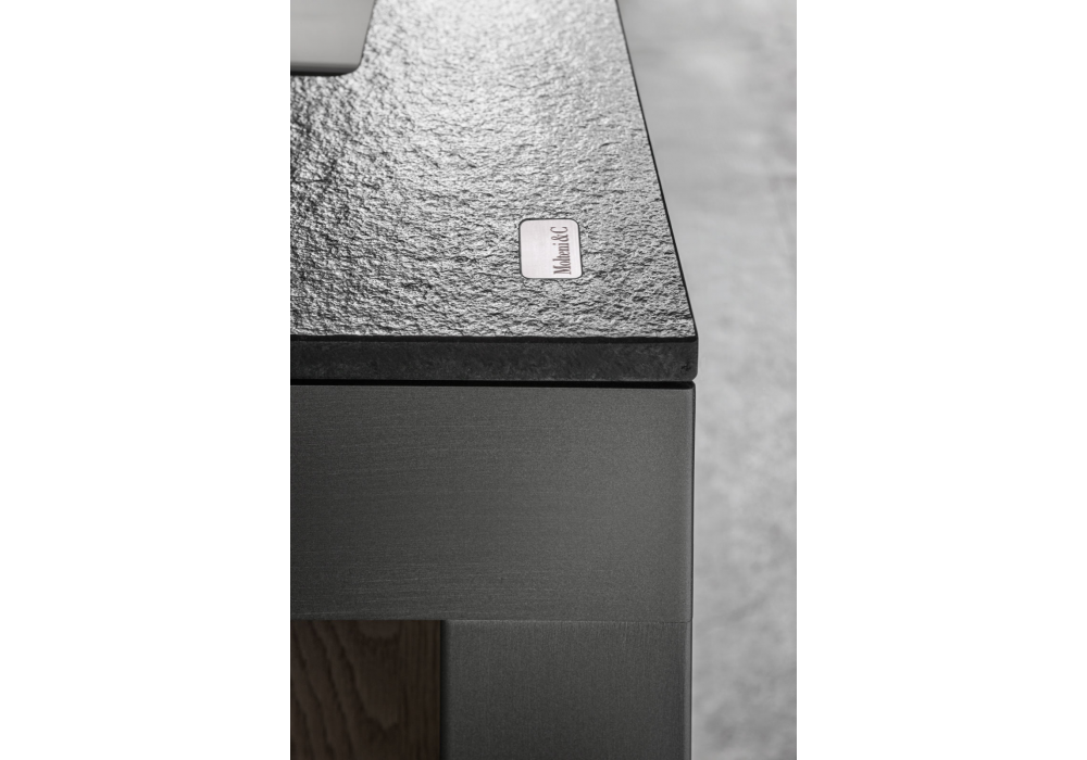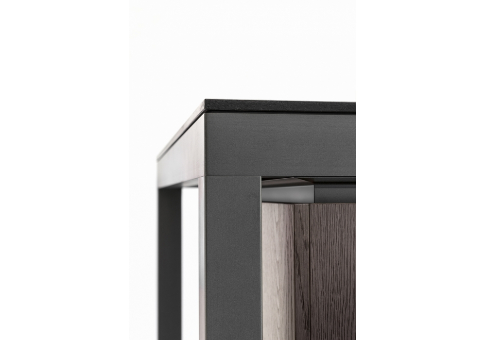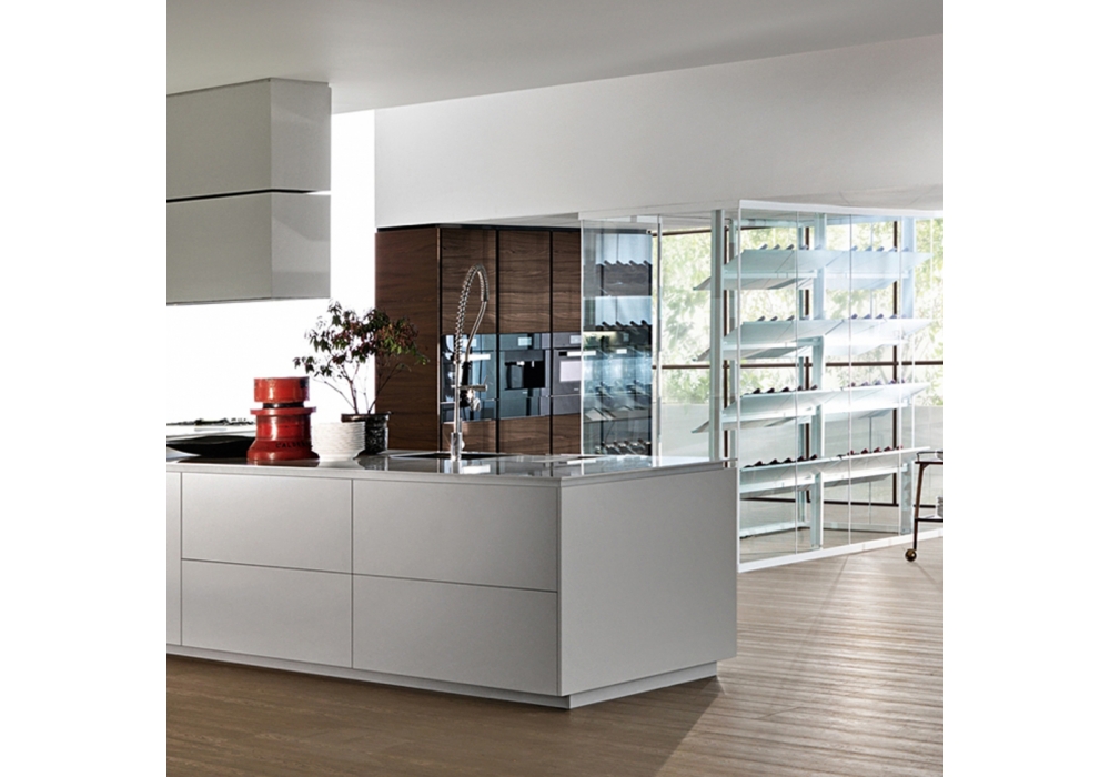 Banco designed by Luca Meda for Molteni&C is a kitchen with a solid aluminum structure. The doors can be lacquered or in wood, while the tops laminate, in fenix®, cartapietra, dekton, silestone, natural stones, glass, corian® or stainless steel.