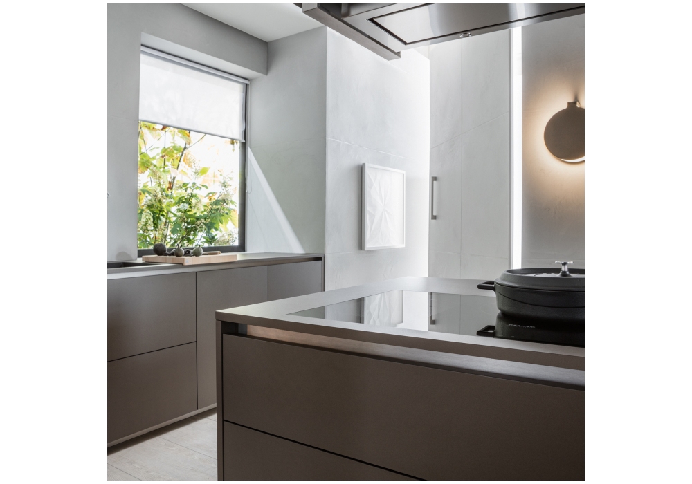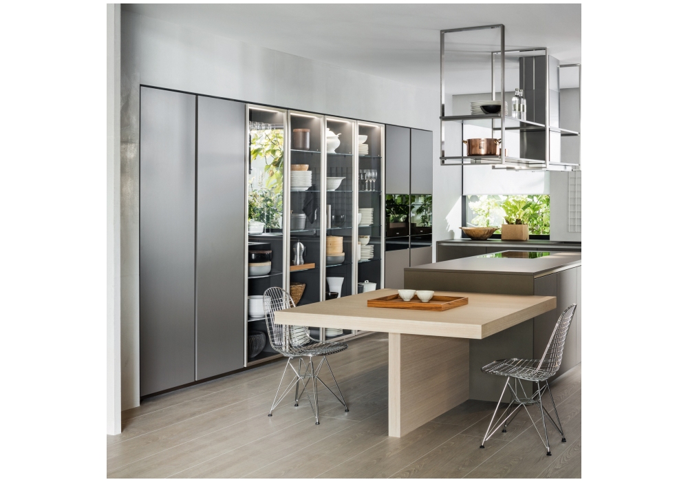 Hi-Line 6 designed by Ferruccio Laviani for Molteni&C is a simple and linear kitchen. A space organized with esprit de géométrie combined with rigorous forms, wealth of details and attention to construction quality. The bases are higher, to contain everything and better. Far from the classic kitchen concept, Hi-Line 6 allows numerous compositional possibilities. No handle but a groove to open and close the doors.