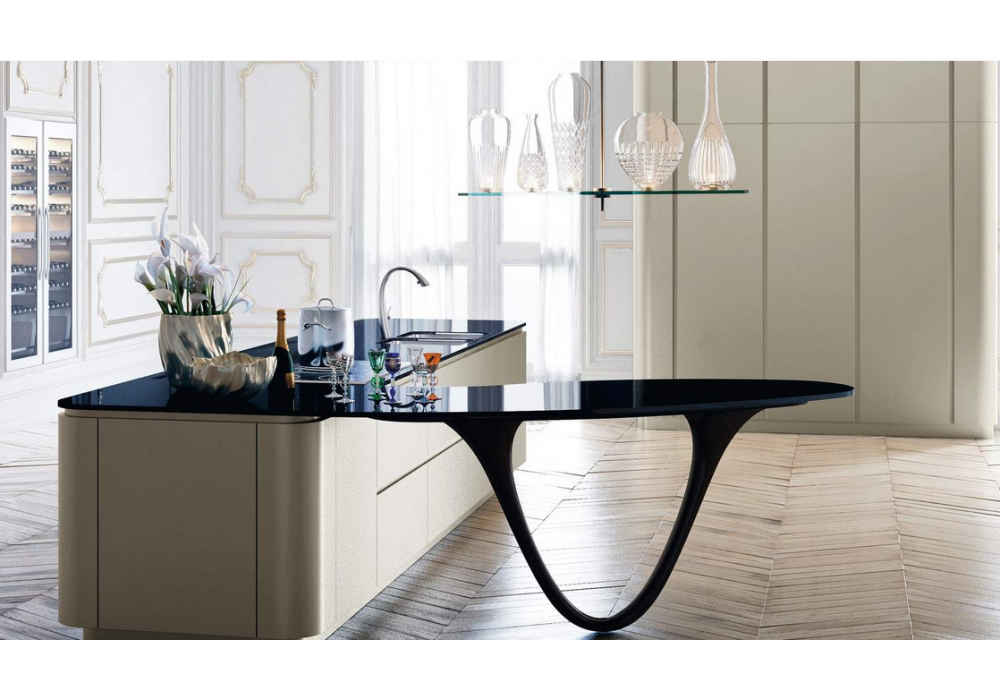 Ola designed by Pininfarina is a kitchen with a design that refers to design values inspired by safety and the rational use of space, bringing an exclusive technology of automotive origin to the kitchen: micalized lacquering. This lacquering is obtained by using mica as a reflecting agent, a mineral mixed with the varnish, it creates a less reflective and more transparent brilliance, for which more "sharp" and elegant colors are obtained.