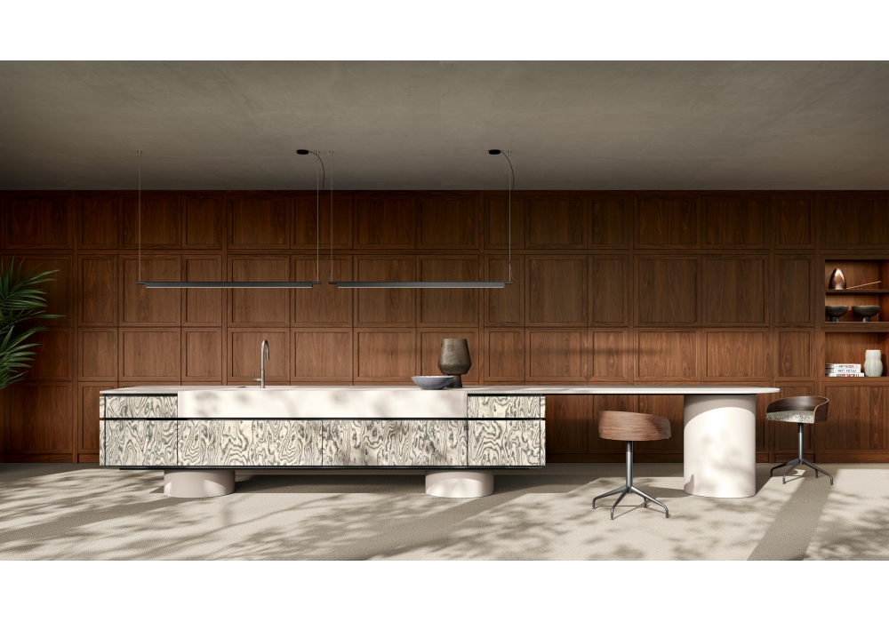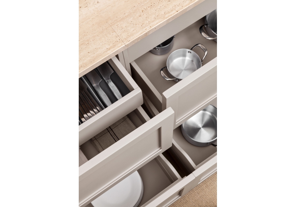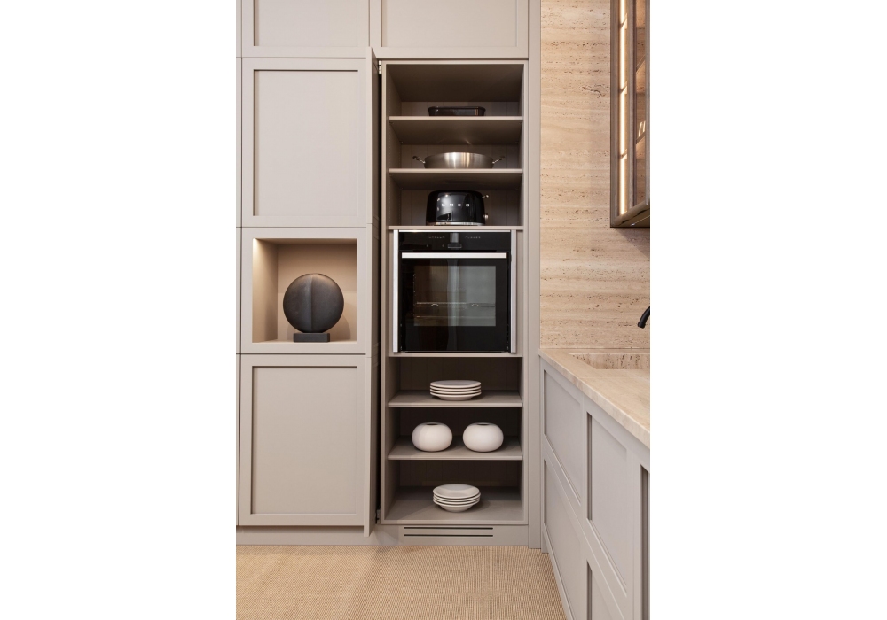 Atlante designed by Makethatstudio for L'Ottocento is a kitchen characterized by decisive shapes and original combinations of materials, where classic and contemporary style meet to create new compositional solutions. The interior spaces are in fact fully equipped and can accommodate appliances or pantry compartments.