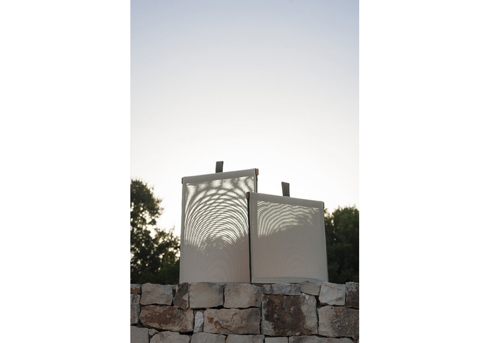 Pillow designed by Gordon Guillaumier for Roda is a lantern made up of a teak base and lampshade in Canatex. The LED light source is powered by a battery with 6/8 hours of autonomy.