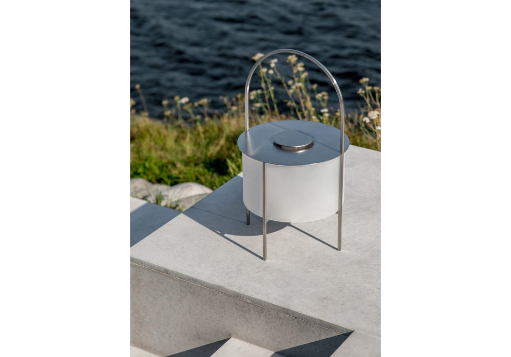 Garden designed by Broberg & Ridderstråle for Röshults is a lantern made of brushed stainless steel and glass.