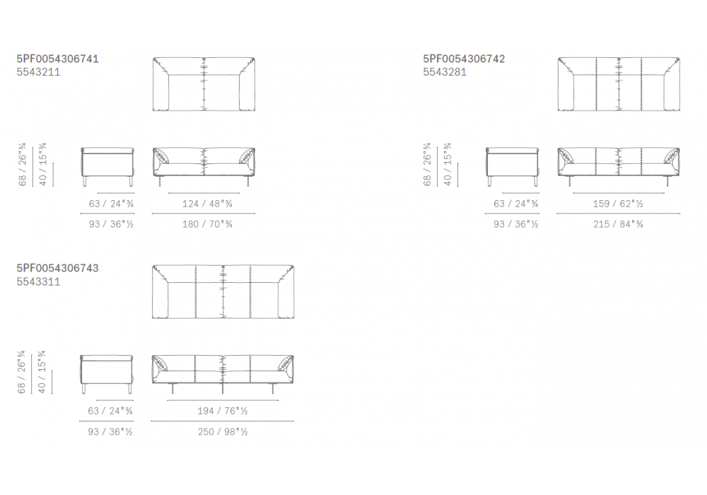 | Dimensions | 180 x 93 x H 68 cm; 215 x 93 x H 68 cm; 250 x 93 x H 68 cm. |