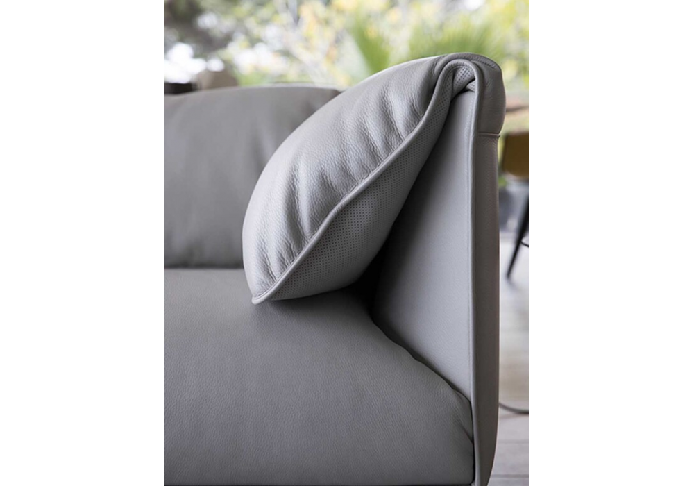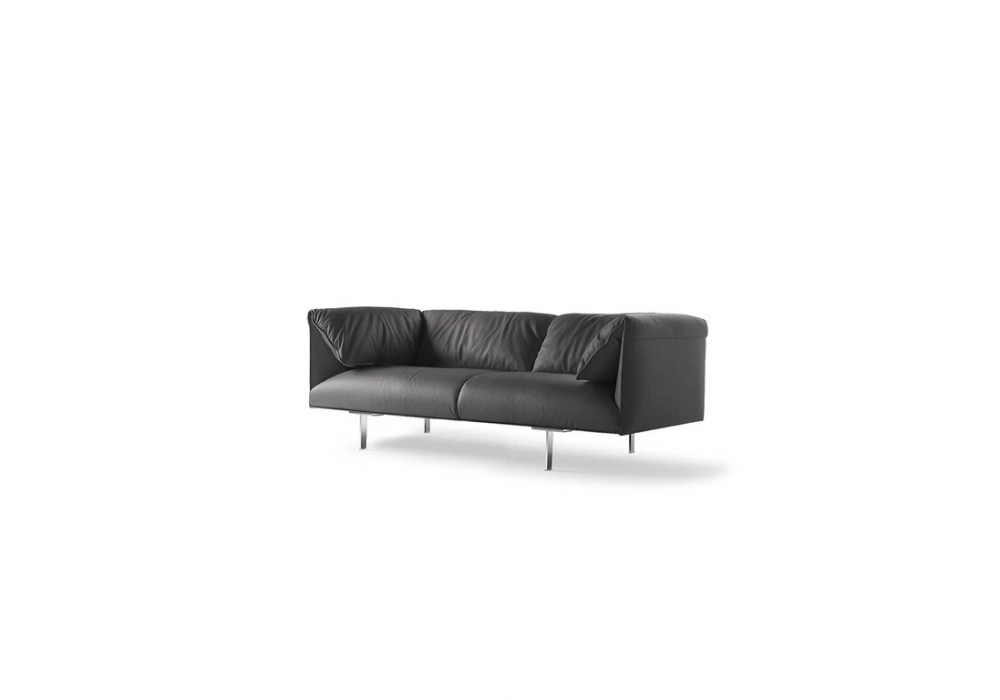 John-John, designed by Jean-Marie Massaud for Poltrona Frau, is a sofa available in three dimensions. Feet in ruthenium-finished aluminium with transparent plastic caps. Uphostery in pelle Frau® leather, not removable. The backrest and armrests cushions are attached to thestructure thanks to the Pelle Frau® leather upholstery, which features amicro-perforated surface on the lower side.