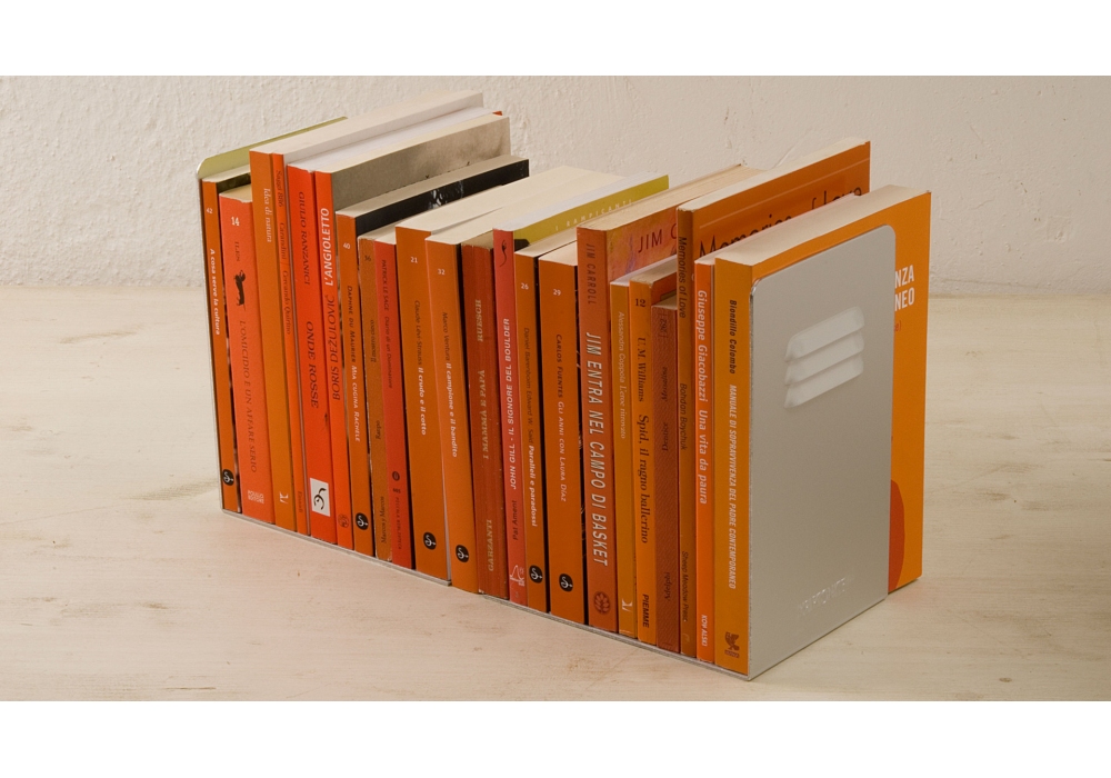 The bookends designed by Kriptonite are made of anodized aluminium.