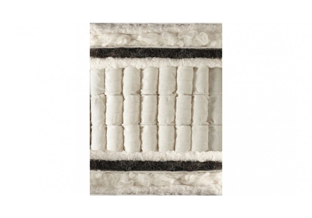 Diamond Majesty designed by Vispring is a mattress with a triple layer structure with pocket springs covered in calico cotton. Filling with British wool, cashmere, silk. The finest quality canvas. Quilted with hand made wool bows. Edges padded with coir and wool fibers, horizontal handles and ventilation system. Available with or without sommier. Sommier and mattress available in different sizes. Possibility of adding various accessories or fabrics.