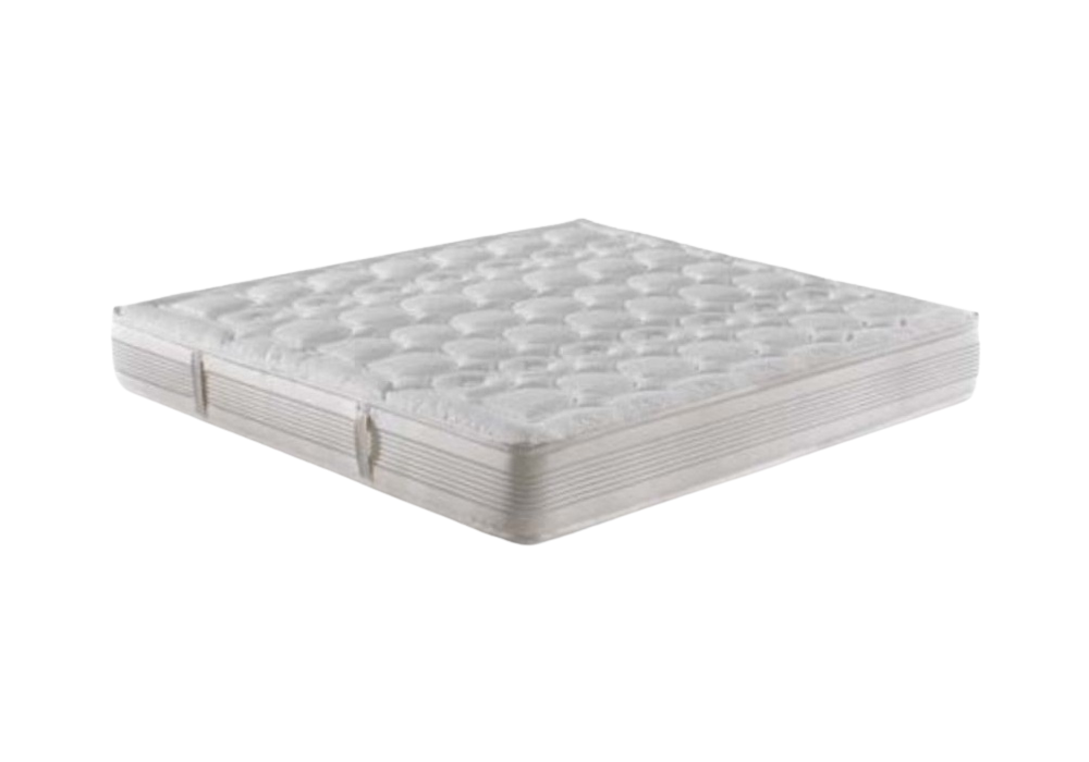 Royal designed and produced by Twils is a mattress with 2000 independent pocket springs, removable and washable toppers and "1000" independent springs in 7 zones. Contains Aquatech box with smooth plates and reinforced side members. Outer lining with 1 washable Bna/silk padded side and 1 removable Soy Memory padded side. Outside in white cashmere fabric with placed quilting. 27cm tall.