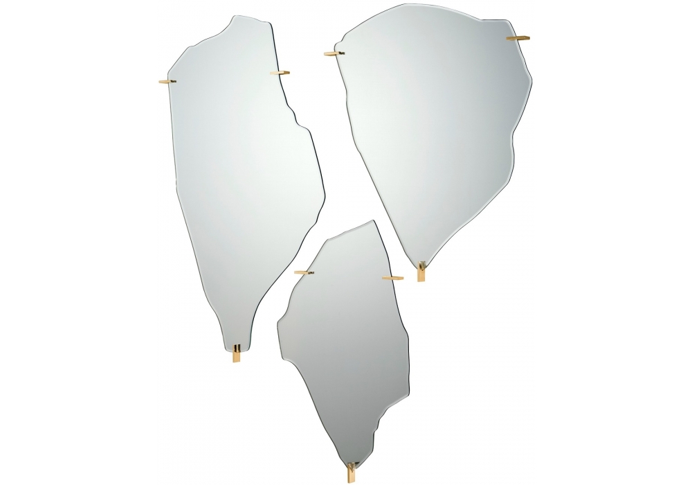 Arcipelago designed by Fredrikson Stallard for Driade is a mirror made with CNC cutting, bevel, painted steel plate and anti-shattering film. Decorative elements in steel with gold-colored galvanic finish. Internal use only. Available in different sizes.