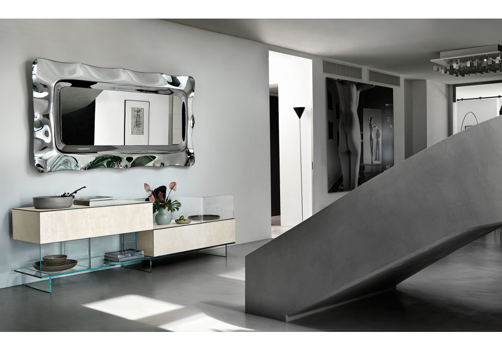 Dorian designed by Massimo Iosa Ghini for Fiam is a mirror in high-temperature fused glass. Rear frame in painted metal.