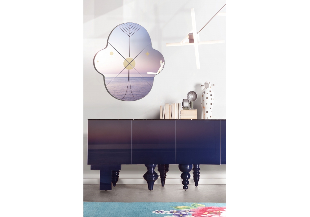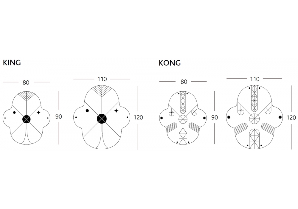 King Kong designed by Jaime Hayon for BD Barcelona Design is a mirror available in two different sized with designs applied in gold and black. The back of the mirrors are in black.