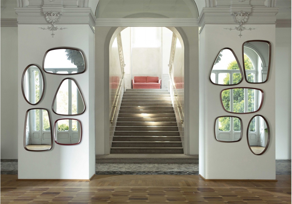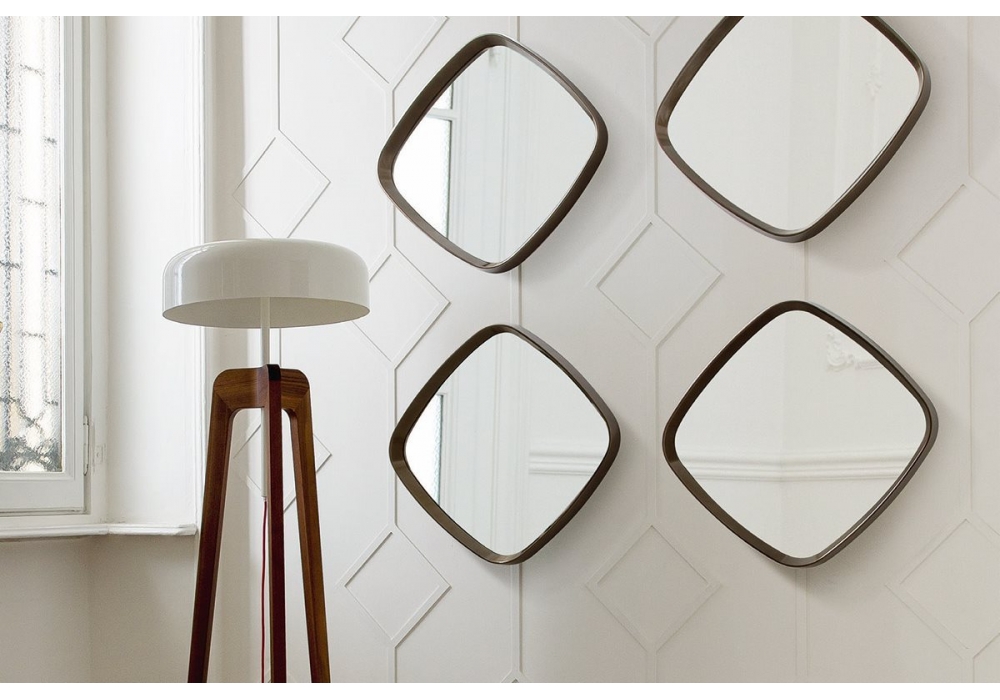 Mix designed by Carlo Ballabio for Porada is a wall mirror with frame in solid canaletta walnut or matt lacquered closed pore. Turnable to 360° thanks to the particular fixing support. Mounting template included. Available in various dimensions.