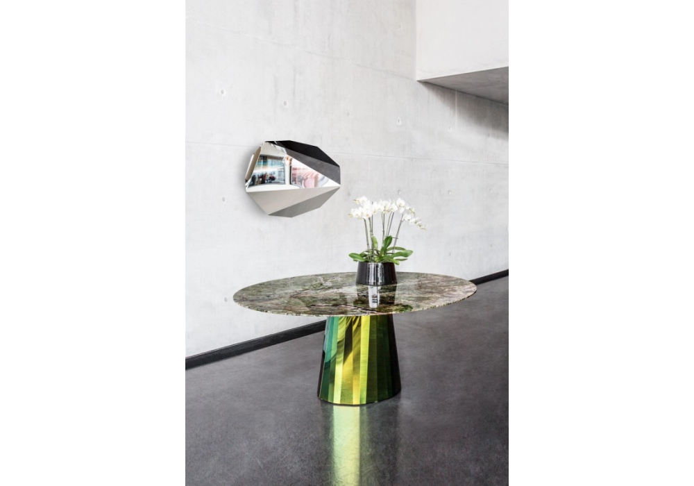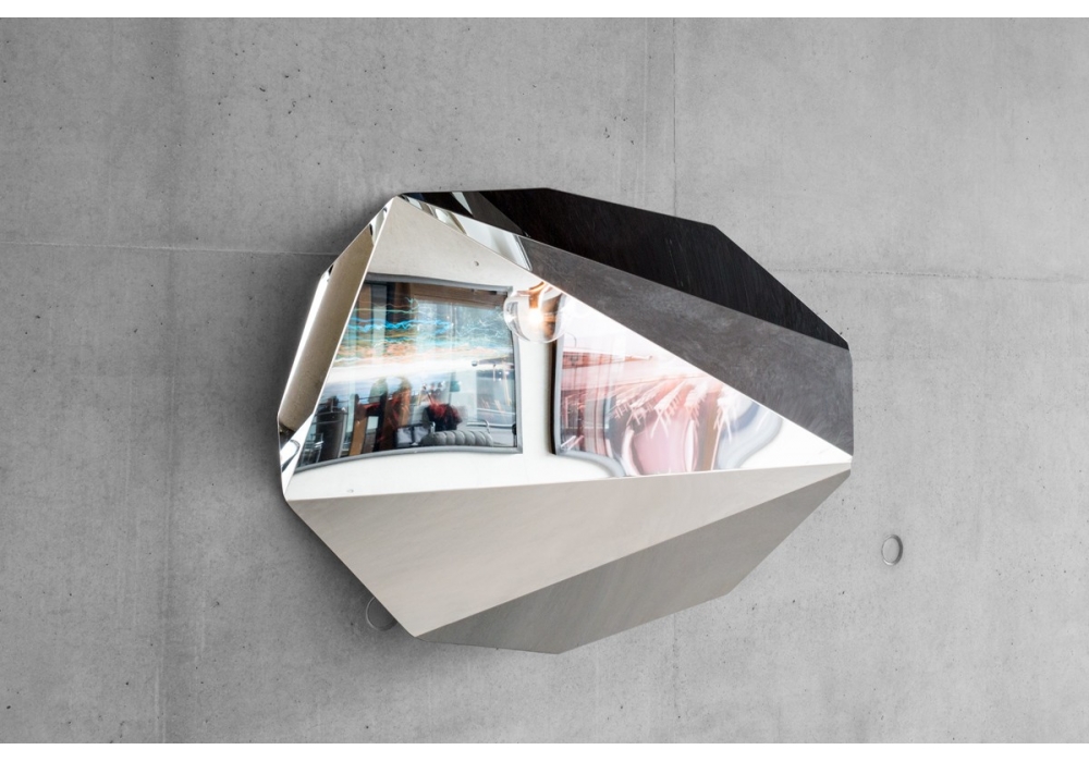Piega designed by Victoria Wilmotte for ClassiCon is a mirrors collection in folded stainless steel sheet with mirror-polished finish. Available in three dimensions.