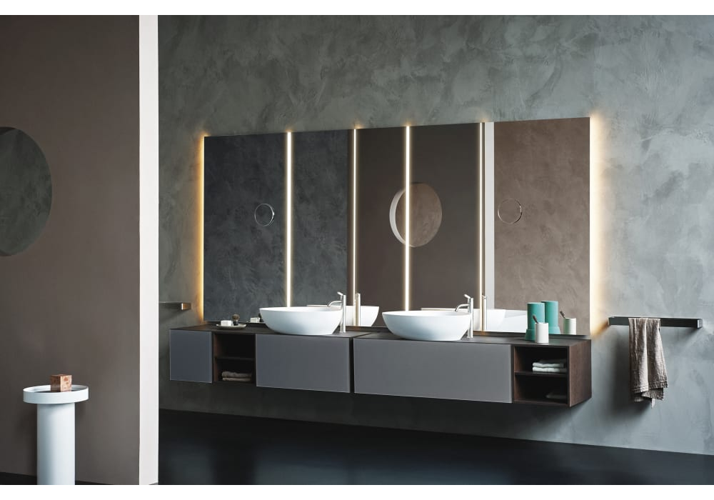 Nudo LED designed by RD Agape for Agape is a rectangular mirror with LED lighting, switch and polished edge and safety film. Available in the version with or without switch kit with wireless receiver.
