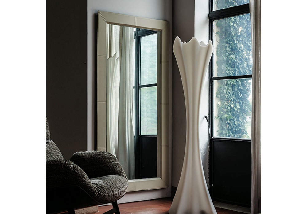 Photo designed by Giorgio Cattelan for Cattelan Italia is a wall mirror with upholstered frame in saddle leather. Available in five different dimensions.