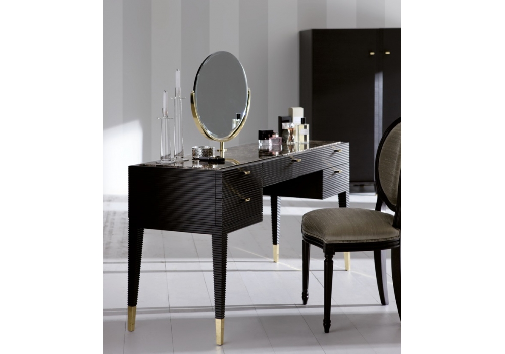 Ornella designed by Castello Lagravinese Studio for Opera Contemporary is a dressing mirror with metal structure and back panel in MDF black lacquered.
