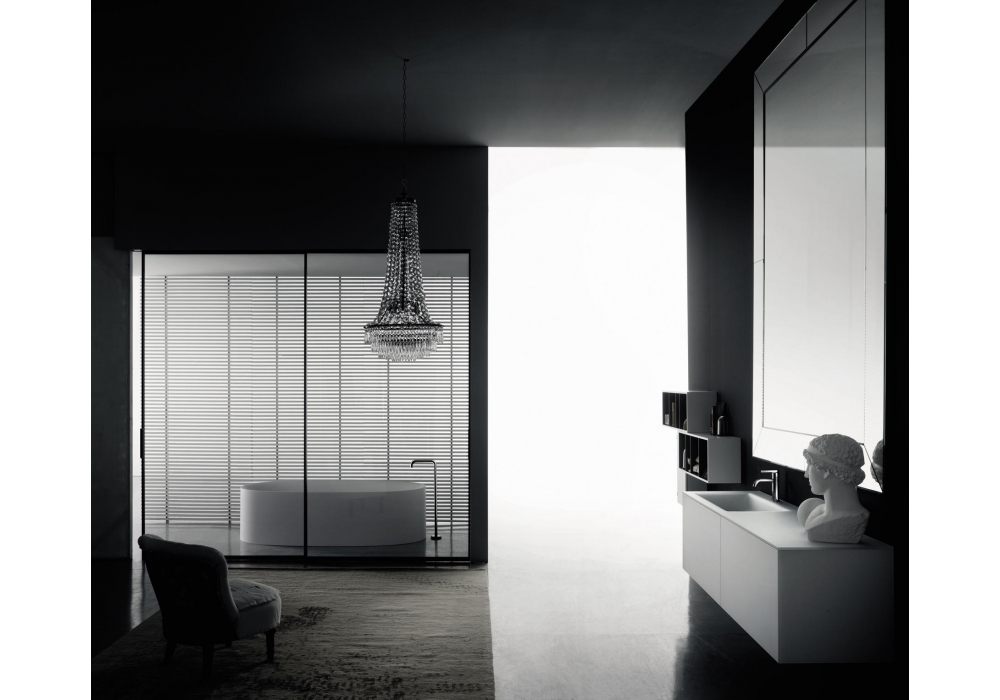 Veneziana designed by Piero Lissoni for Boffi is a custom made wall mirror with black anodised aluminium frame. Bevelled mirror frame available in 16 cm or 20 cm dimension.