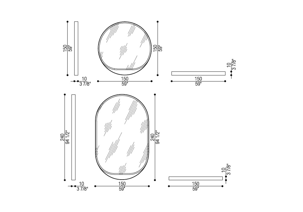 | Dimensions | Ø 150 cm; 150 x H 240 cm. |