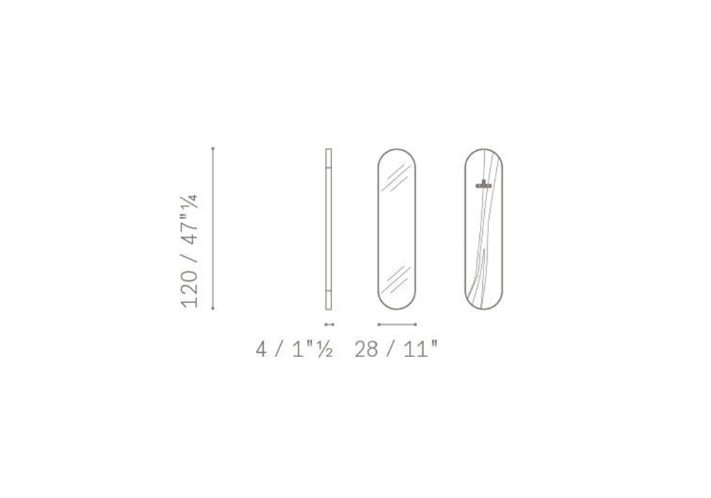 Ren designed by Neri & Hu for Poltrona Frau is a mirrror with brass frame covered with Saddle Extra leather available in different finishes.