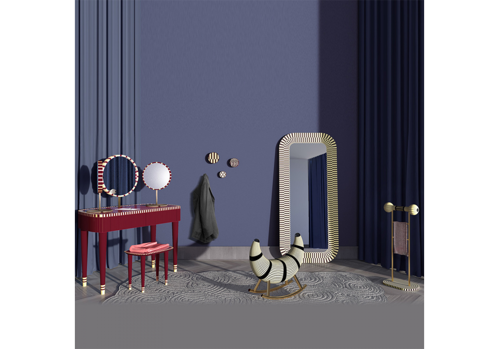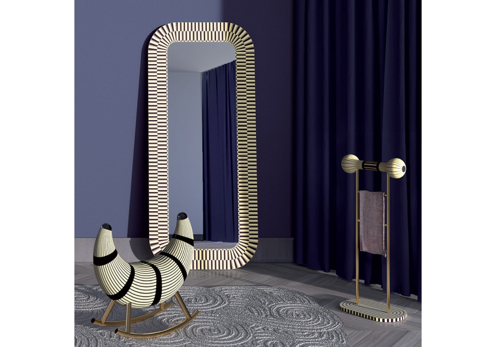 Strike designed by Matteo Cibic for Scarlet Splendour is a floor mirror made of MDF, plywood and resin inlay.