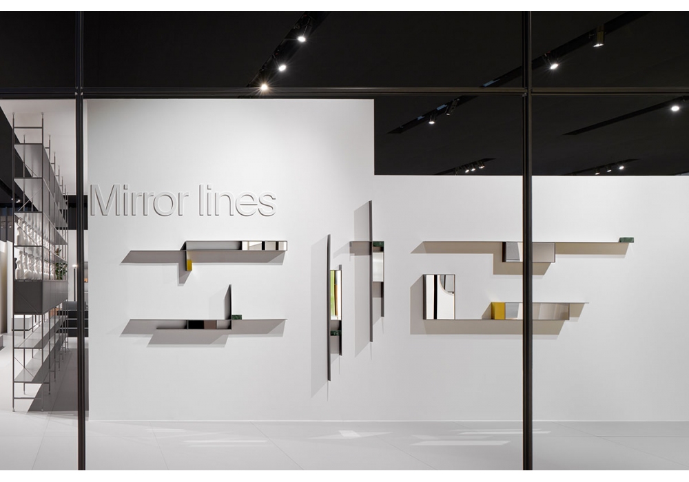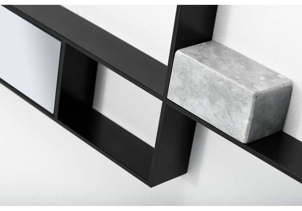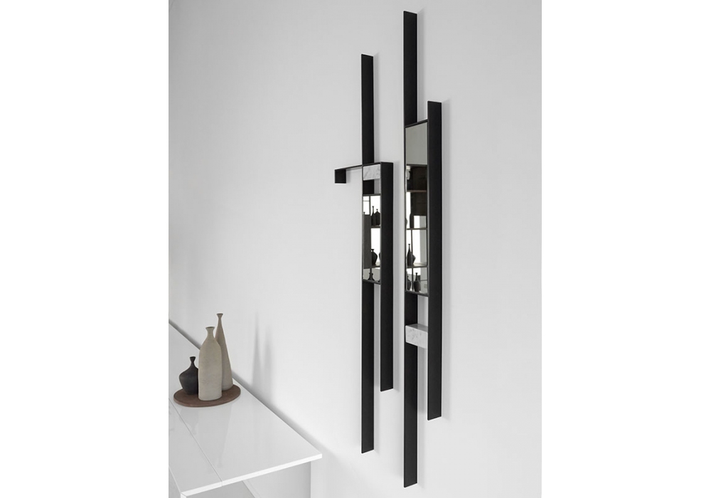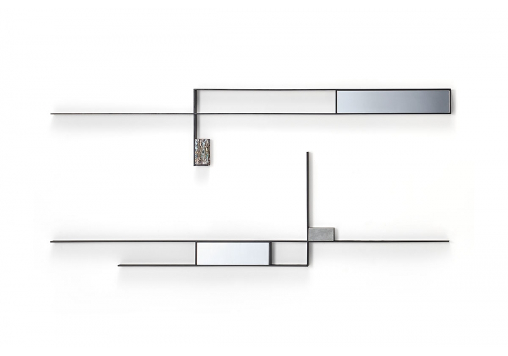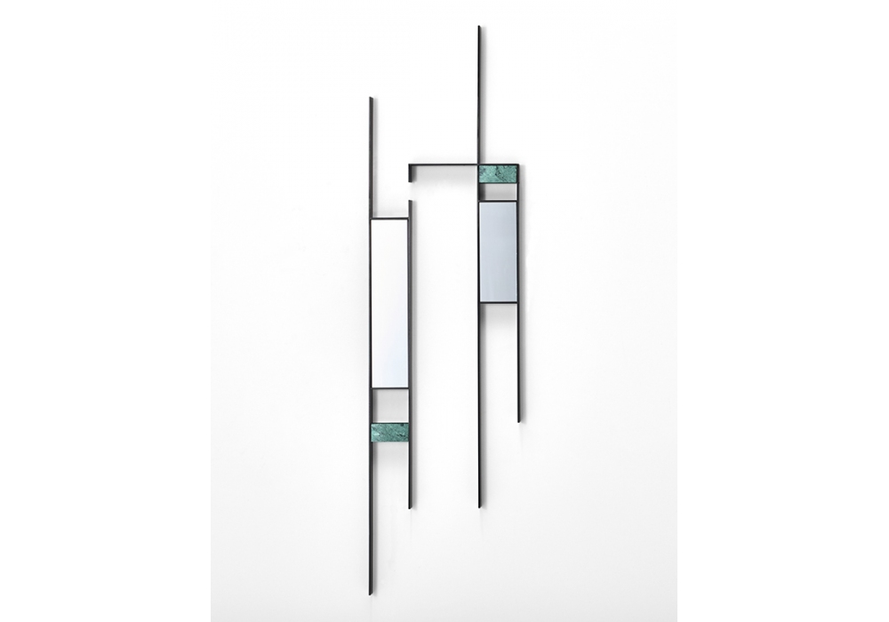 Mirror Lines designed by Irene Goldberg & Pitsou Kedem for MDF Italia is a mirror with a steel structure in two finishes with decorative elements in brass, marble and stones, available in different compositions.