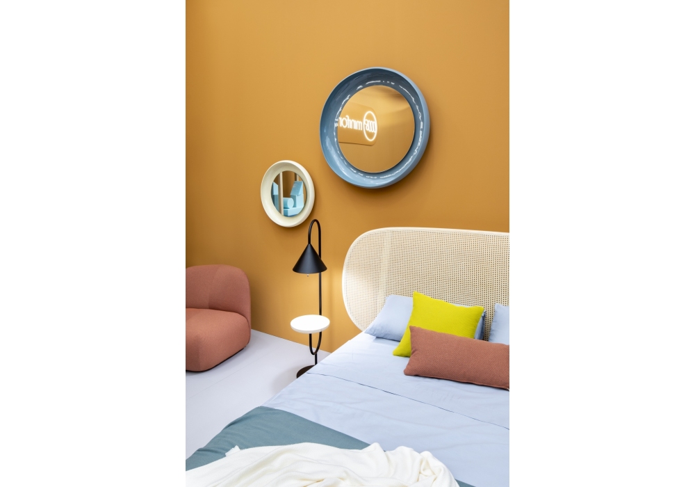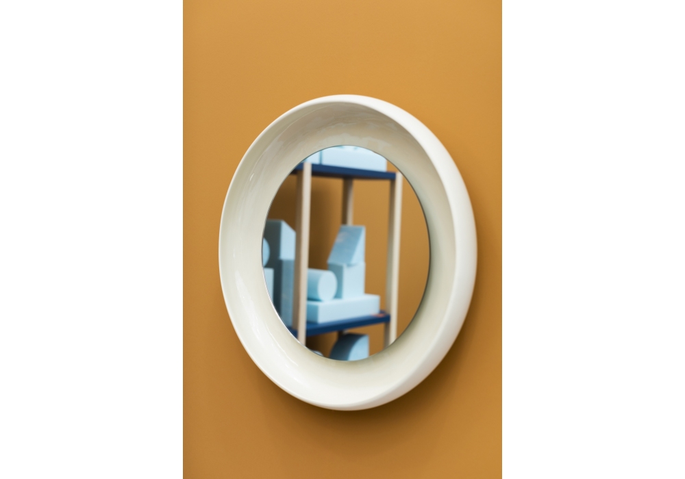 Coque designed by Alain Gilles for Miniforms is a round mirror with inner frame in glazed ceramic and outer frame in matt ceramic. It is available in two sizes, and in different finishes.