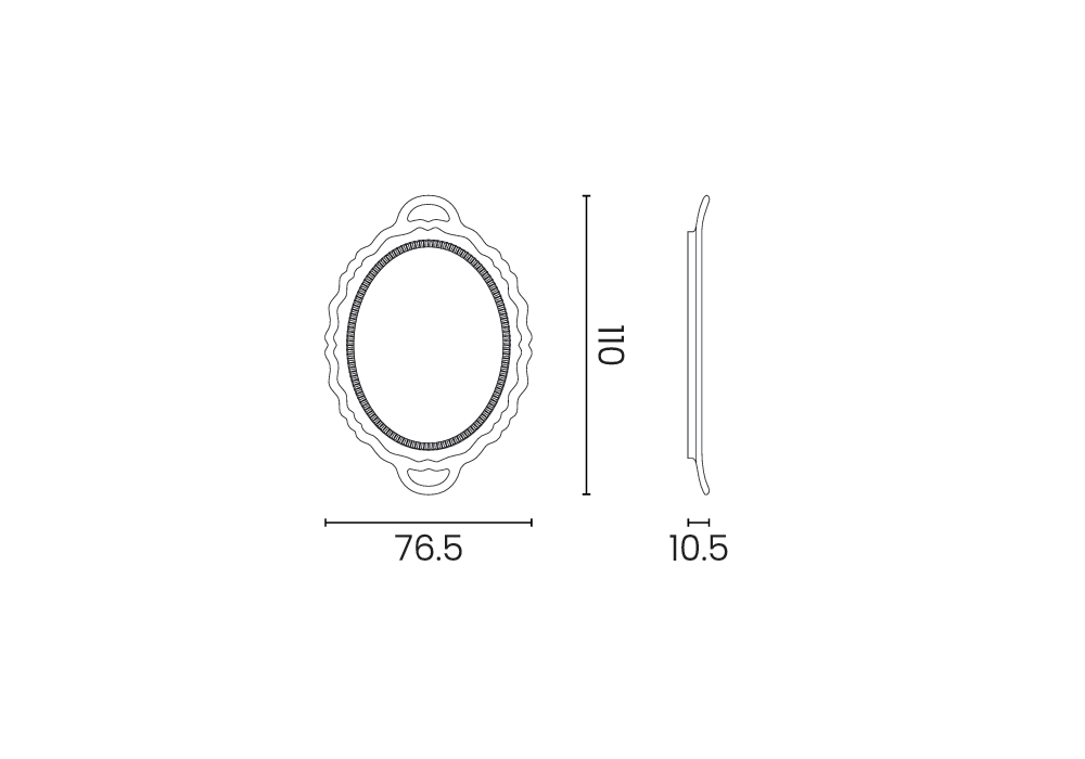Plateau Miroir designed by Studio Job for Qeeboo is an oval-shaped mirror entirely made of polyethylene in different finishes.
